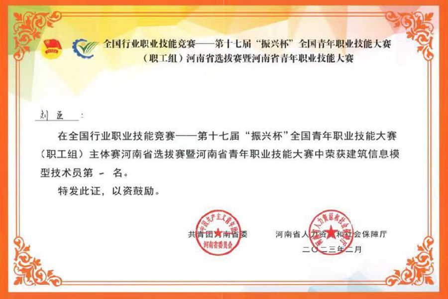 近日,公司華中分公司青年職工劉臣,在全國(guó)行業(yè)職業(yè)技能競(jìng)賽——第十七屆振興杯全國(guó)青年職業(yè)技能大賽(職工組)主體賽河南省選拔賽暨河南省青年職業(yè)技能大賽中榮獲建筑信息模型技術(shù)員一等獎(jiǎng)。