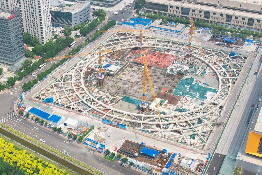 攻堅克難,高效建造。建設過程中,項目管理團隊以高效建造的建設理念引領項目高質量建設。在土方施工階段,克服冬季施工難度大、疫情形勢嚴峻等困難,提前25天完成施工。通過合理策劃,提前50余天沖出正負零。項目高度重視創高優管理,圍繞工程需求,組織開展關鍵核心技術攻關,已發表成果論文5篇,獲得省部級BIM成果獎2項。